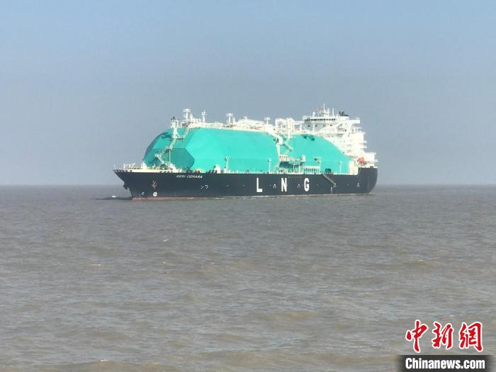 1日下午,装载5.9万吨液化天然气的LNG船“光辉卡玛拉”轮靠泊洋山港。 洋山港海事局供图